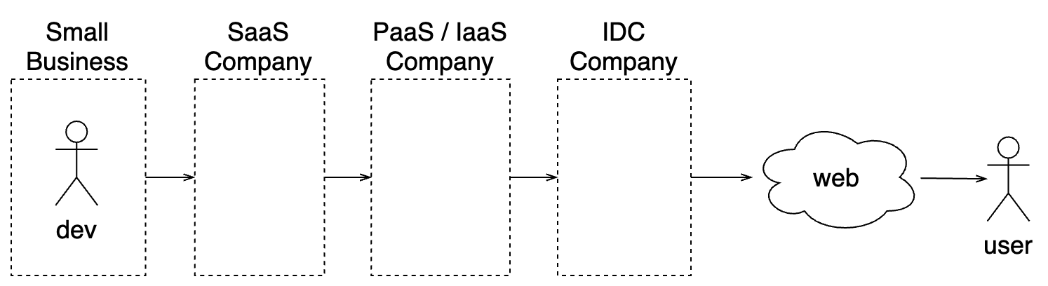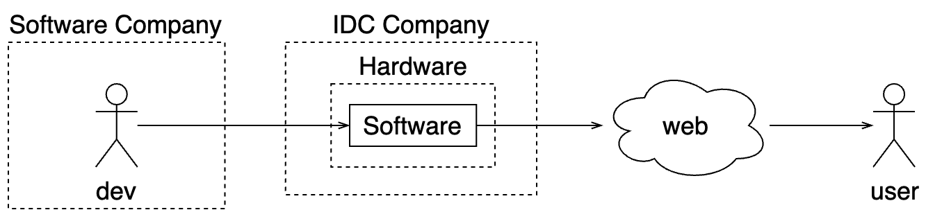 | IDC | outsourcing hardwares | performance dependent on IDC connections and power supply | multi-region availability; CDN; pay as you go on hardware layer. | data security; cannot evolve on hardware / software integrations |
